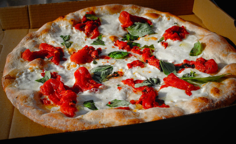 Tomato Sauce: A rich, tangy tomato sauce spread evenly over the crust. Imported San Marzano Tomatoes, Fresh Basil and seasonings.